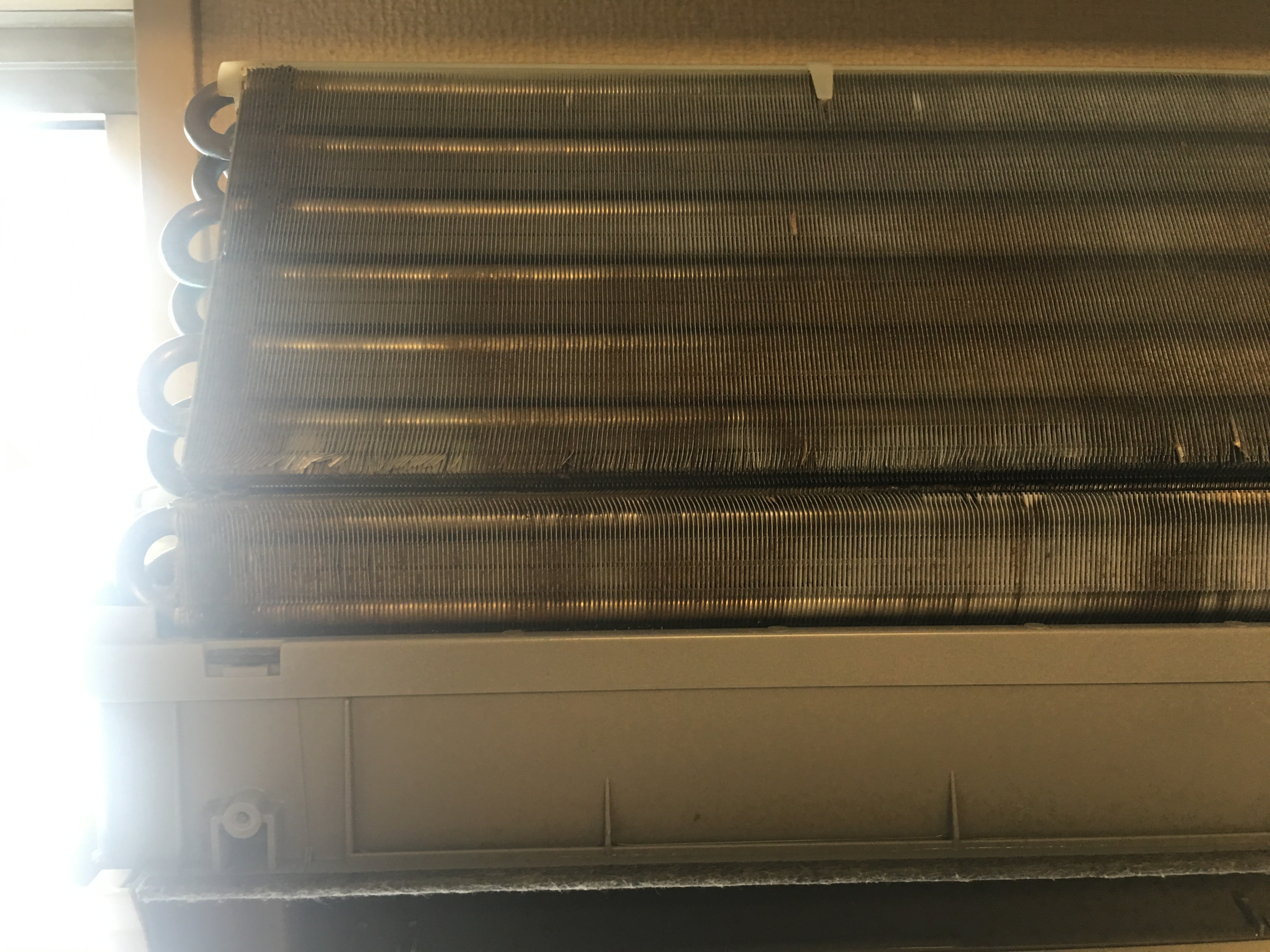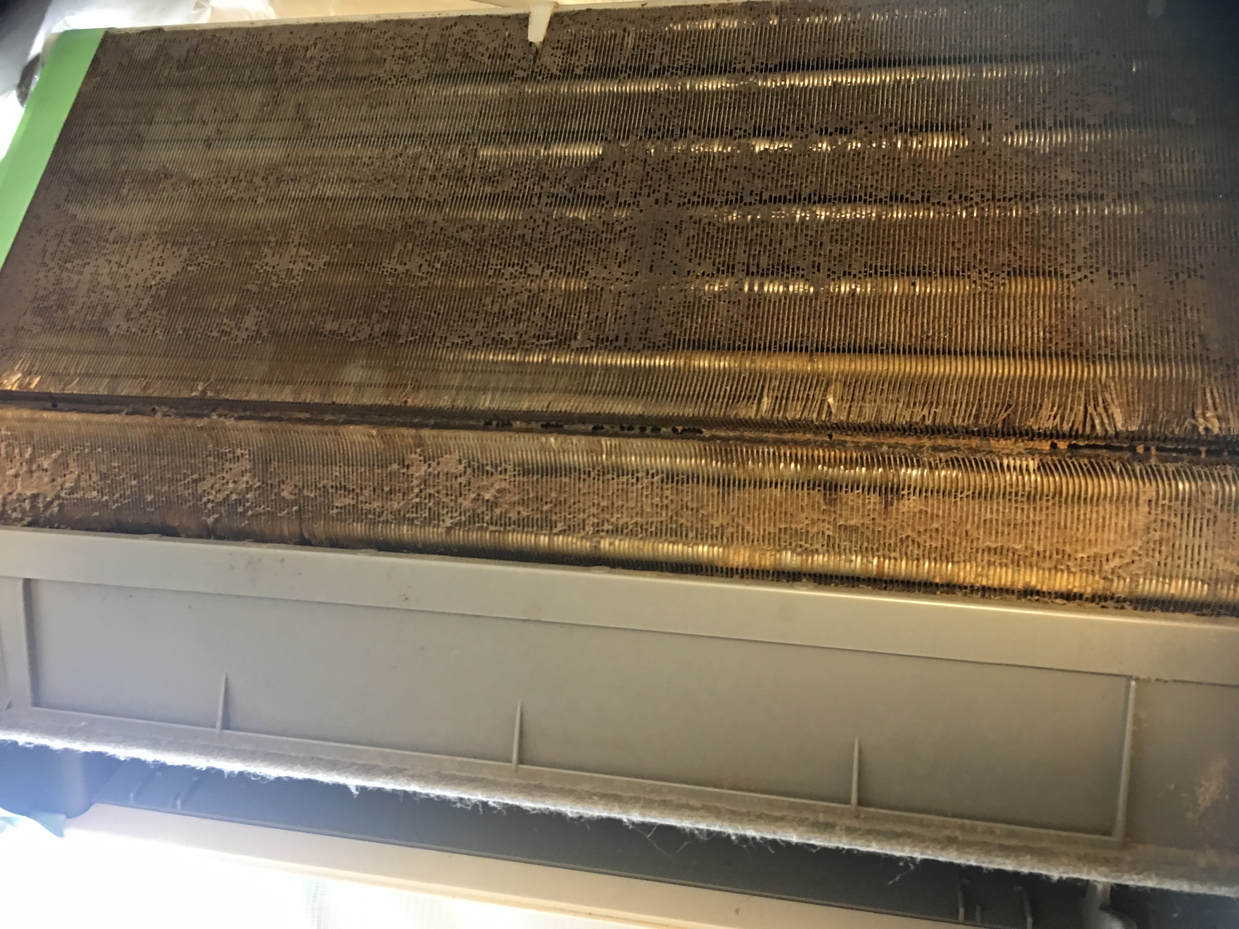 洗浄をすすめているとどうしても汚れが取れてこないので、入念に観察してみるとアルミフィンが錆びていることがわかりました。